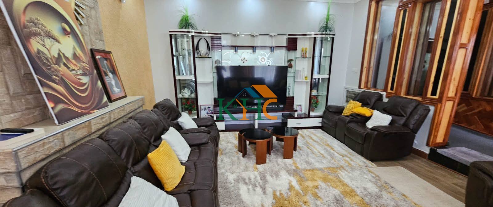 This house rooms has been fitted with high-end royal finished kitchen cabinets and wardrobes. The house has suply of all social amenities such as sewerline, Eldowas piped water, and internet connection. The house is located in a serene, royal developed and resided neighbourhood, hosting the top politicians, athletes and top business people in Riftvalley and western part of Kenya